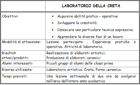 I laboratori della Scuola Secondaria di 1° Grado I progetti pomeridiani per le Classi Prime 2005-2006